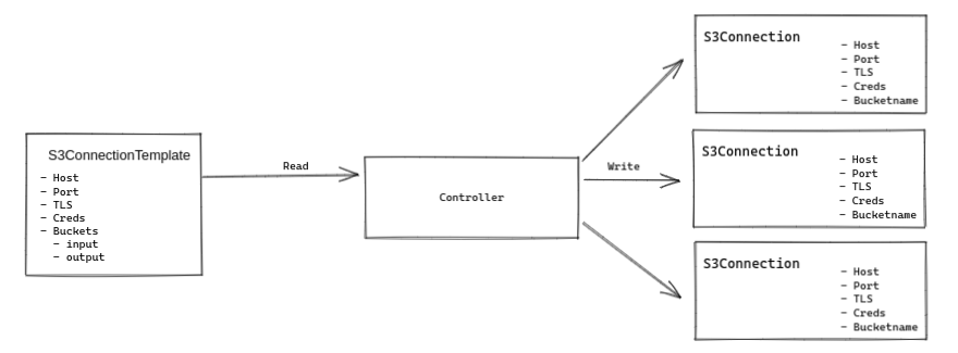 Option 6: Generate inlined S3Connection objects from templates with a dedicated controller