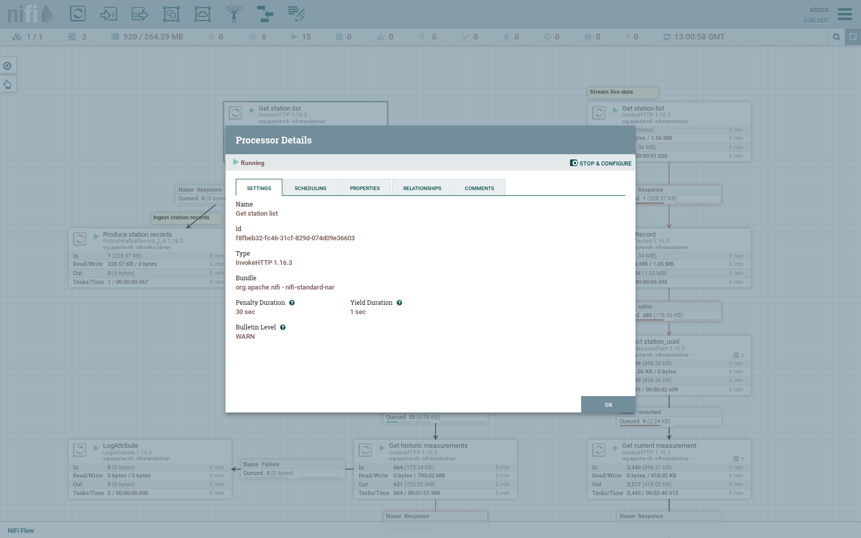 Afterwards the demo will fetch the current measurement of every station approximately every two minutes and ingest it near-realtime into Kafka