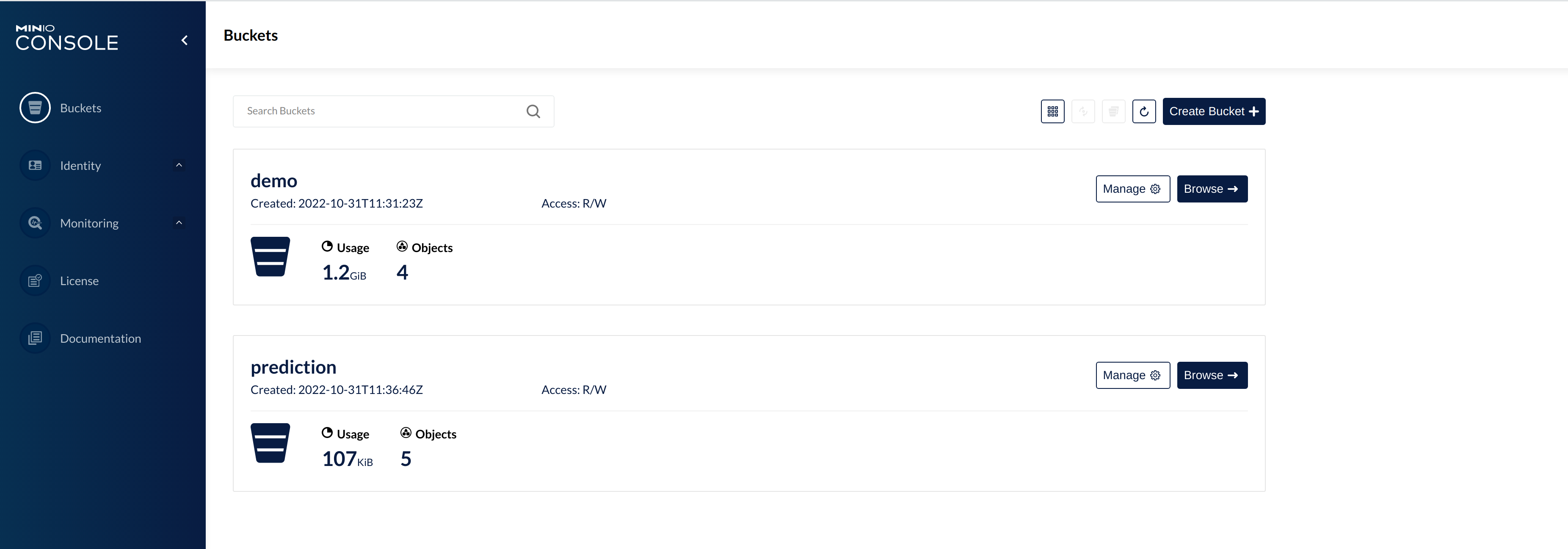 MinIO: A S3 compatible object store. This demo uses it as persistent storage to store all the data used
